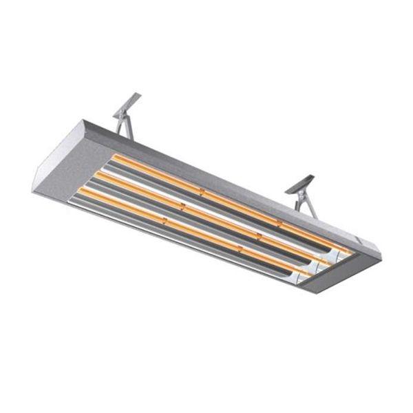 Этот обогреватель может использоваться в помещениях и на объектах с высотой потолков от 4,5 до 20 метров. Он относится к так называемому потолочному типу, что определяет характер его традиционной установки (непосредственно на потолке или на вертикальной стене ближе к потолку). Прямоугольный плоский корпус IR 3000, размерами 1125х358х83 мм изготовлен из высококачественной оцинкованной листовой стали с нанесенной, путём порошкового напыления, краски. Всё это предохраняет корпус прибора от вредного воздействия окружающей среды и продлевает срок его эксплуатации. Основные элементы, содержащиеся в корпусе прибора, это отражатель, изготовленный из отполированного анодированного алюминия и три излучателя – тепловые электрические нагреватели в виде продольных стержней суммарной мощностью 3000 Вт. Каждый такой стержень заключен в стальную оболочку. Температура их нагрева достигает 700 Сo. Кроме этого на задней части корпуса имеются специальные монтажные скобы для крепления его к потолку. Предусмотрена так же клемная коробка для подключения прибора к электропитанию и для возможности его подключения в систему, состоящую из нескольких обогревателей. Для декоративных и защитных целей с передней рабочей стороны может быть установлена алюминиевая решётка. Она может стать незаменимой, когда обогреватели установлены на объектах спортивного назначения.