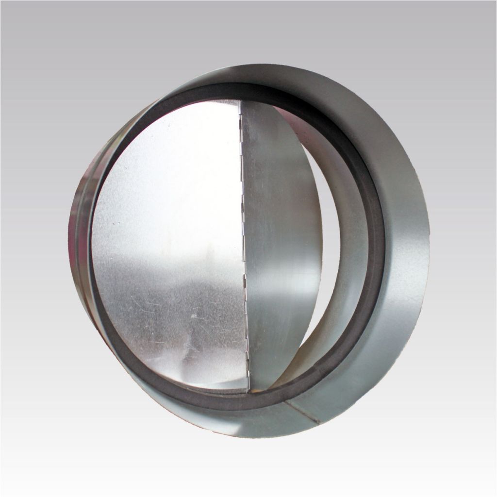 Обратный клапан СКЦ с подпружинными лопастями обеспечивает автоматическое перекрывание круглых воздуховодов при выключении вентилятора. Обратный клапан может быть установлен в любом положении. Конструкция клапана обеспечивает его крепление с воздуховодами и другими элементами системы вентиляции при помощи хомутов. Корпус обратного клапана выполнен из оцинкованного стального листа, лопатки изготовлены из листового алюминия. Внутри корпуса клапана установлено демферное уплотнительное кольцо.