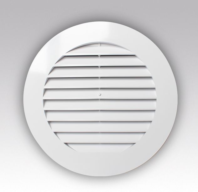 Серия РКН. Круглые решетки с горизонтальными наклонными жалюзи и фланцем. Материал: ASA-пластик