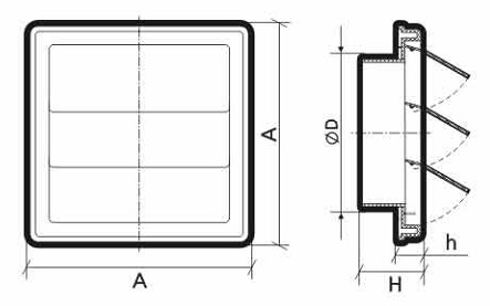 1515К10Ф, Решетка приточновытяжная с гравитационными жалюзи АБС 150x150 с фланцем D100, бел.