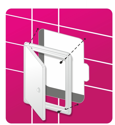 2. закрепить люк в стене с помощью саморезов и дюбелей.