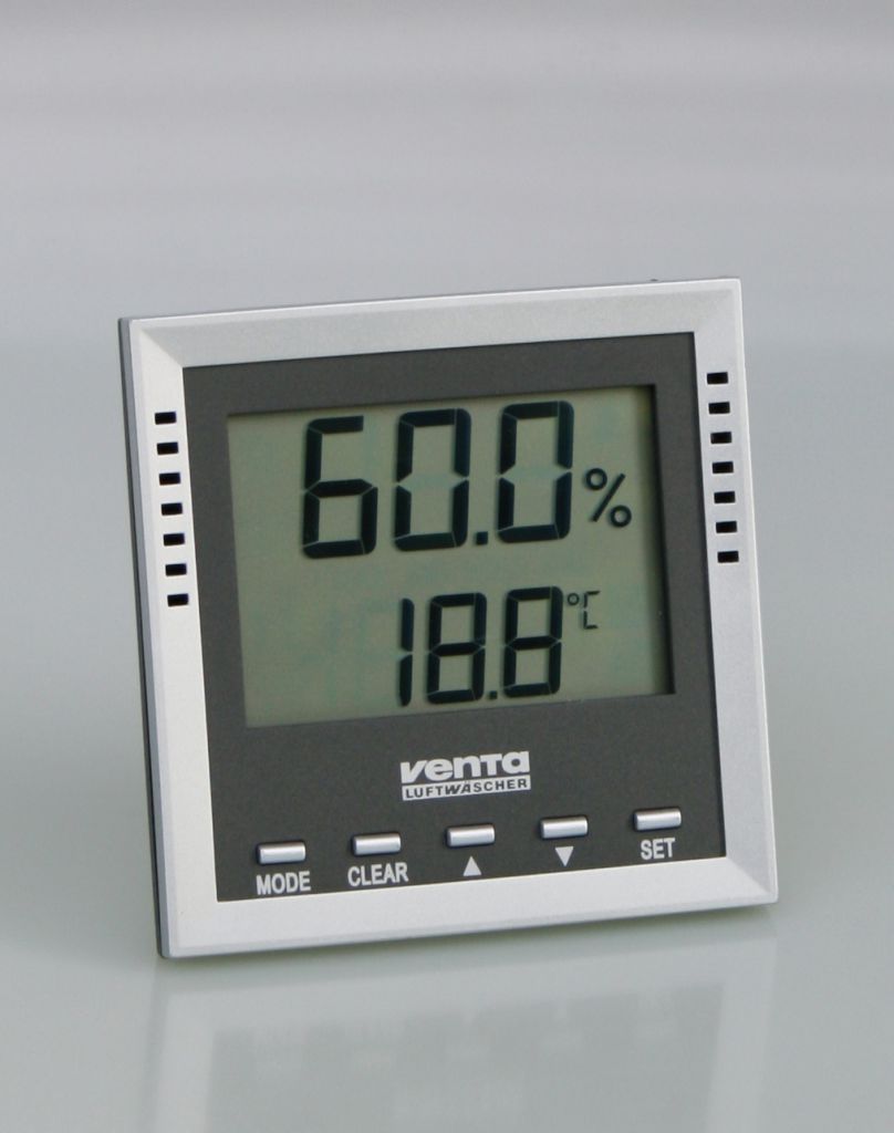 Электронный термогигрометр VENTA является высокоточным измерительным прибором, идеально подходит для контроля климата в жилых, складских помещениях, а также в помещениях для тестирования климата (соответствует стандартам ISO 9001).